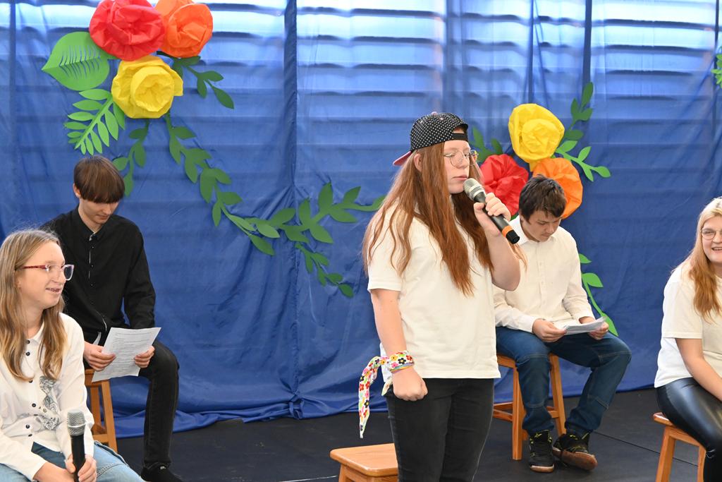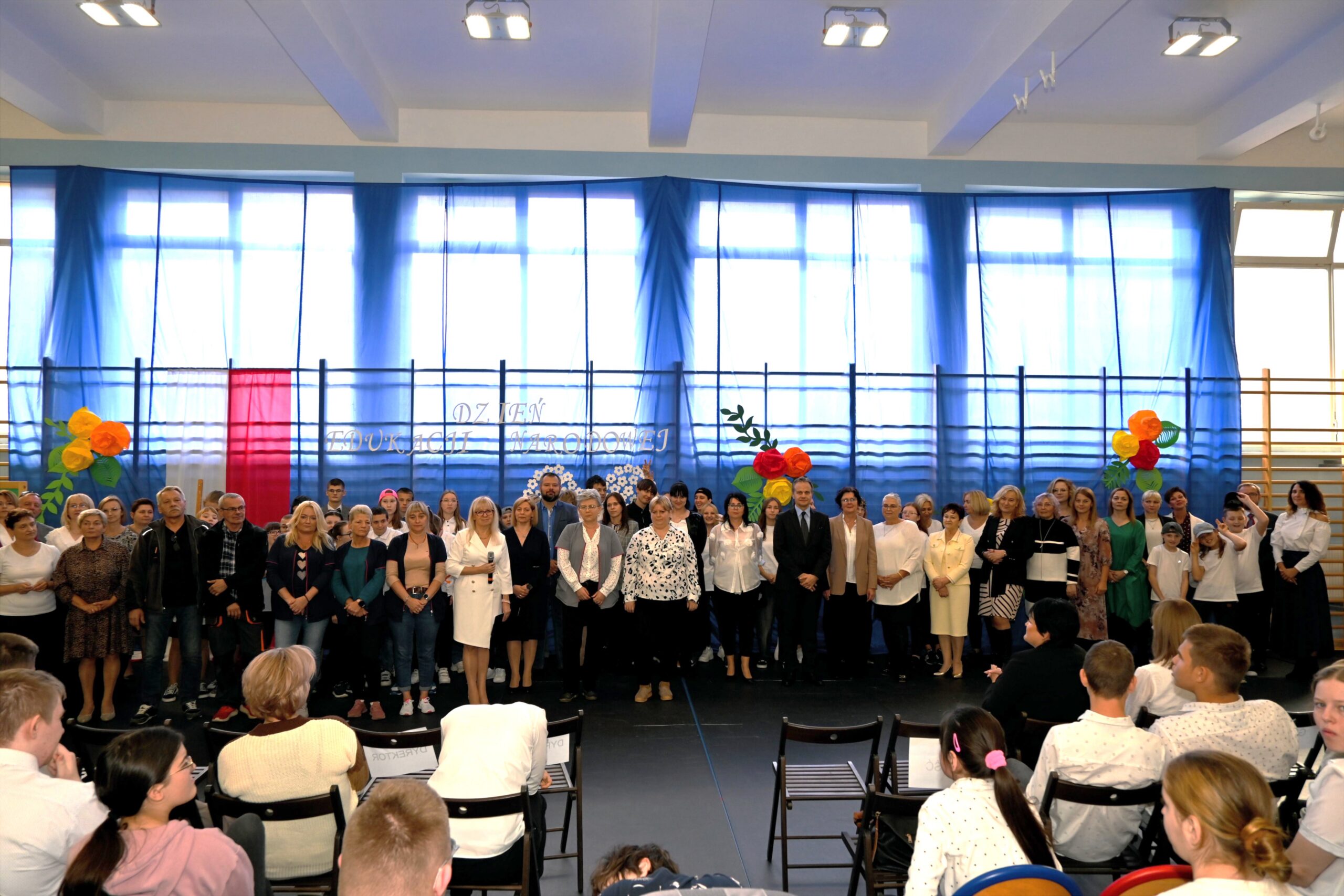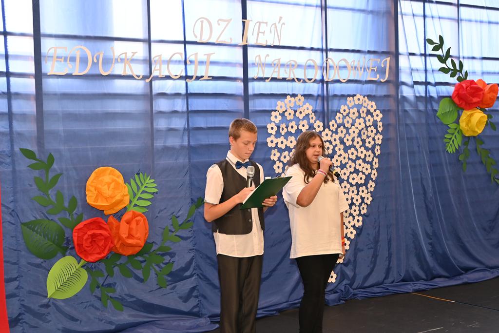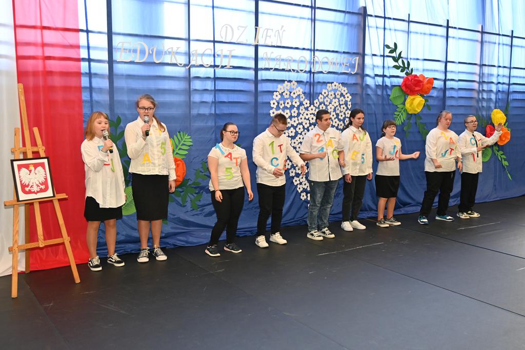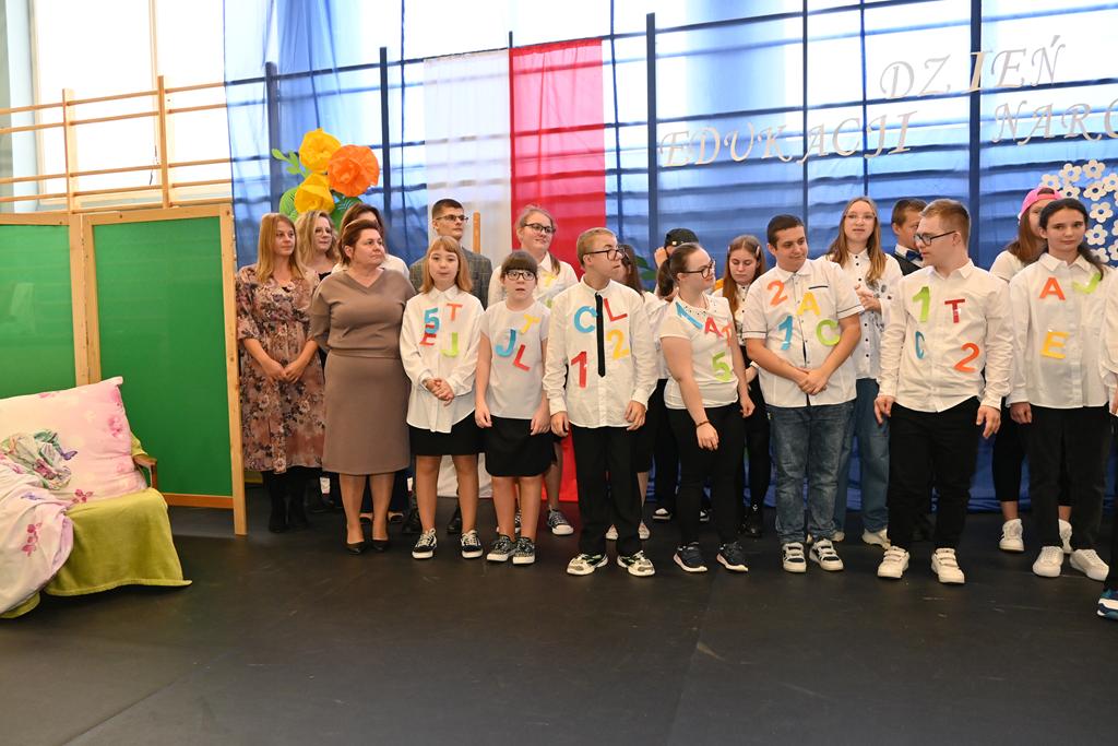 13 października 2025 r. odbyła się uroczysta akademia z okazji Dnia Edukacji Narodowej. Zgodnie z ustalonym ceremoniałem uroczystość rozpoczęła się od odśpiewania hymnu. Następnie, panie dyrektor Magdalena Kowalczyk i wicedyrektor Małgorzata Politańska wspólnie powitały wszystkich zebranych: nauczycieli, pracowników szkoły, uczniów i rodziców. Po powitaniu mikrofony i scenę we władanie przekazano młodym artystom. Uczniowie przedstawili program artystyczny składający się z wierszy, piosenek, układów choreograficznych i humorystycznych scenek z życia szkoły. Wiele ciepłych i miłych słów popłynęło w kierunku wszystkich pracowników szkoły. Występ został przyjęty owacyjnie i nagrodzony gromkimi brawami. Po występie Pani Dyrektor przedstawiła nauczycieli oraz pracowników administracji i obsługi, którzy zostali nagrodzeni Nagrodą Dyrektora SOSW oraz podziękowała za dotychczasowe zaangażowanie w pracy i życzyła wytrwałości w tym wyjątkowym zawodzie.