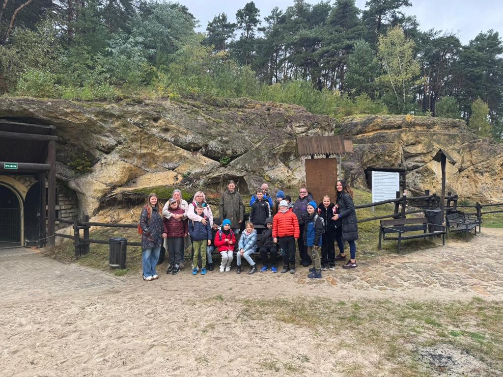 Dnia 7 października uczniowie klas I, II i III au wybrali się na wycieczkę, która pozwoliła dzieciakom poszerzyć swoje wiadomości o okolicy i regionie. Odbyliśmy przeprawę przez podziemną Trasę Turystyczną Groty Nagórzyckie. Wykwalifikowany przewodnik opowiedział o historii i specyfice wyrobiska oraz przypomniał lokalne legendy i ciekawostki związane z naszymi podziemiami. Zwiedzanie odbyło się wzdłuż zabezpieczonego chodnika górniczego o długości ok. 160 m. Do szkoły wróciliśmy lasem gdzie dzieci mogły odprężyć się w pięknych okolicznościach natury i poznać wiele gatunków roślin i drzew.