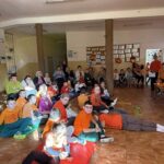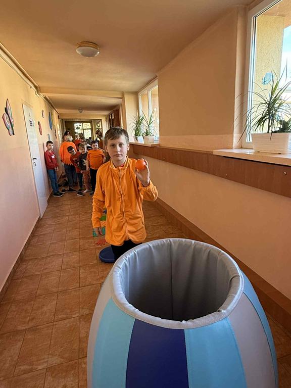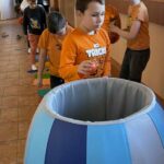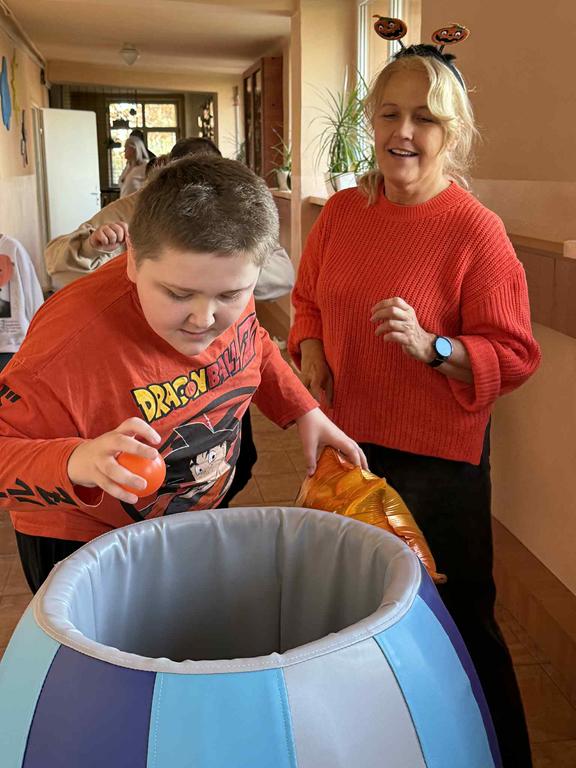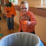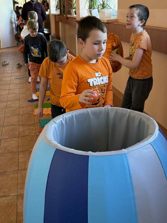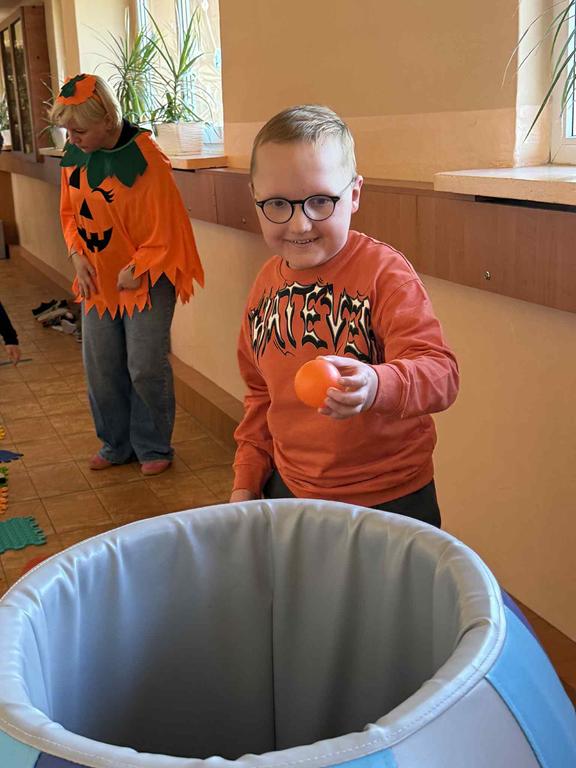 Następnie pojawił się Dyniowy Czarodziej, który porwał wszystkich do tańca. Dzieci tańczyły, rytmicznie poruszając się do wesołej muzyki. Później przyszedł czas na chwilę odpoczynku i poczęstunek pyszną dyniową zupą, która rozgrzała i dodała sił oraz witamin do dalszej zabawy. Na uczestników czekał jeszcze dyniowy tor przeszkód – pełen ruchu i sportowych wyzwań. Dzieci pokonywały kolejne etapy, wspierając się nawzajem.