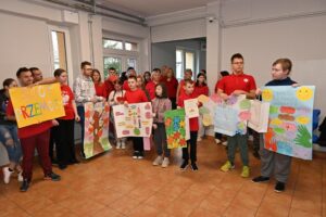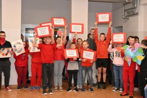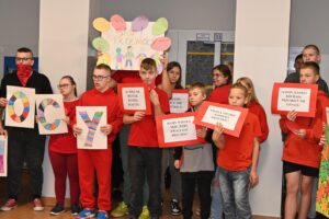 W dniu 19.11.2025r. w ramach ogólnopolskiej kampanii „Dzieciństwo bez przemocy” uczniowie naszej szkoły wzięli udział w happeningu o charakterze profilaktycznym, którego celem było przeciwdziałanie przemocy wobec dzieci. Aby mocniej zaakcentować ten dzień uczniowie i nauczyciele ubrani byli w kolorze czerwonym bądź posiadali czerwone serduszka. Na początku Pani dyrektor Magdalena Kowalczyk skierowała swoje słowa do wszystkich dzieci chcąc przestrzec przed różnego rodzaju przemocą. Następnie odbyła się prezentacja haseł i plakatów przygotowanych przez uczniów ze szczególnym zwróceniem uwagi na ważny temat zapobiegania przemocy wobec dzieci. Odbyło się również podsumowanie profilaktycznego konkursu plastycznego pt. „Dekalog pozytywnego nastolatka”. Kl. IV al. , kl. IV- VI, kl. VII, kl. VIII otrzymały za udział w konkursie pamiątkowe dyplomy i nagrody. Spotkanie zakończono wysłuchaniem i śpiewaniem piosenki „Przemocy mówimy STOP”.