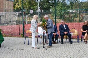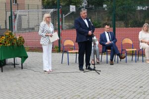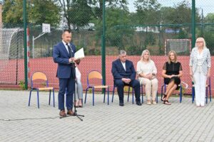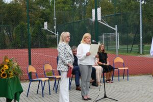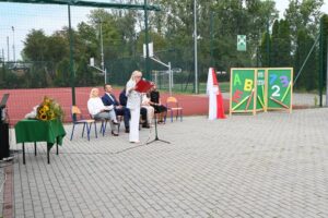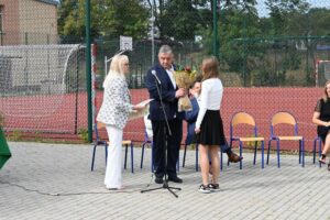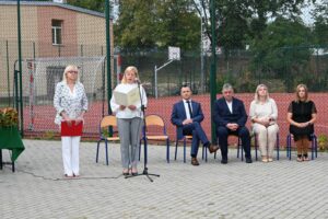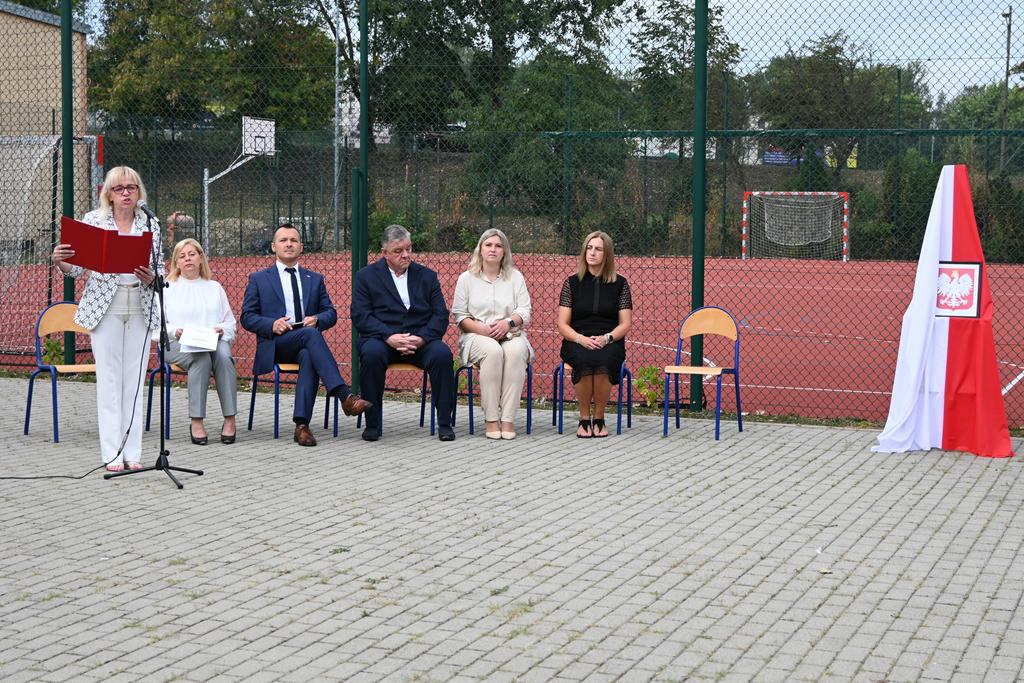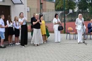 Po odegraniu i odśpiewaniu hymnu, odczytany został przez Panią wicedyrektor Małgorzatę Politańską list Minister Edukacji Barbary Nowackiej z okazji rozpoczęcia nowego roku szkolnego skierowany do całej społeczności szkolnej.