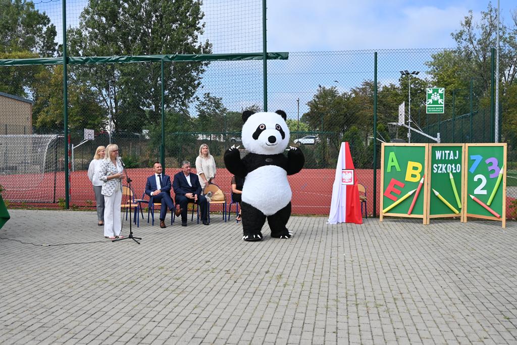 Na zakończenie uroczystości pani dyrektor przedstawiła zebranym Misia Pandę – maskotkę Naszej Placówki, która została entuzjastycznie powitana przez uczniów.